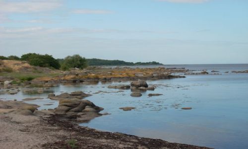 poruszamy się szlakiem rowerowym prowadzącym przez liczne zagajniki, łąki i lasy cały czas po lekko pofalowanym terenie. Od czasu do czasu napotykamy na liczne głazy narzutowe. Z żalem wyjeżdżaliśmy z malowniczego lasu. Jednak żal nasz został szybko złagodzony przez widok lekko pofalowanych dróg, którymi dojechaliśmy do ciekawego zabytku: kościoła obronnego w Ro. Nieopodal napotykamy na ciekawy zabytek motoryzacyjny. Stał on pod miejscową restauracją. Niestety restauracja była otwarta dopiero nazajutrz. Nie pozostało nam nic innego jak tylko kontynuować marszrutę. Prowadziła ona przez "meksykańskie skałki". Jeszcze kilka depnięć na pedały i napotykamy na ... kamieniołom. Tego na tej wyspie się nie spodziewaliśmy.