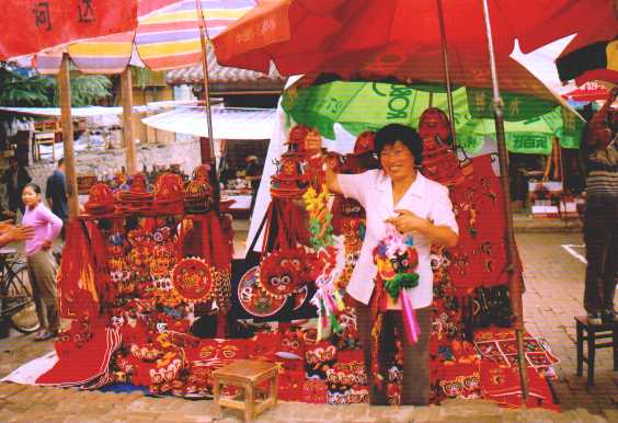 W islamskiej dzielnicy robimy zakupy na ulicy Beiyaunmem - pięknie odrestaurowanej ulicy handlarzy i rzemielników. Można tu nabyć wszelkiego rodzaju wyroby rzemiosła - pieczątki, malowane na zwojach papieru lub jedwabiu obrazki, porcelanowe figurki, porcelanową zastawę stołową, mniej lub bardziej prawdziwe antyki i wiele, wiele innych różnoci. Na niektórych stoiskach na zewnątrz powieszone są miniaturowe drewniane klatki, w których trzymane są wielkie koniki polne-cykady grające swoja muzykę do późnego wieczora. Bez wątpienia targ ten jest wart odwiedzenia.