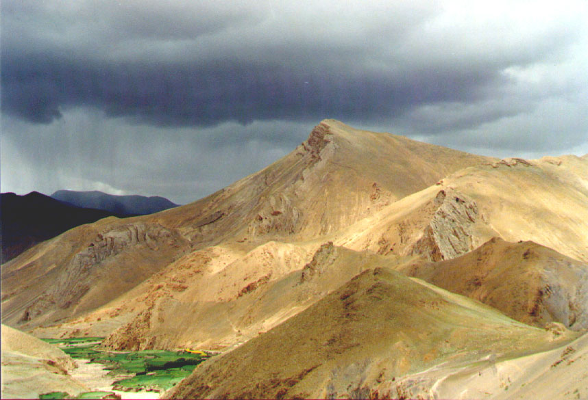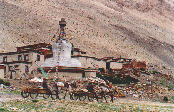 Za przełęczą Karo-la stoją rozłożone namioty nomadów. Czarne lub ciemno brązowe wykonane ze sfilcowanej wełny jaka przypominają namioty koczowników afgańskich lub irańskich. Jeszcze dalej poniżej przełęczy rozciąga się płaskowyż. Widać coraz mniej gór, coraz liczniejsze stają się domostwa i zagrody, zaczynają się pojawiać pola uprawne obsiane jęczmieniem i pszenicą.
