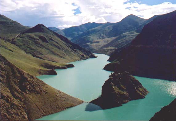 Czasami jazda zapiera nam dech w piersiach - nasz samochód terenowy pnie się niezmordowanie na przełęcze leżące powyżej 5 tys. m n.p.m. Wąskie, słabo utwardzone szosy, kilkusetmetrowe przepacie z jednej strony, a z drugiej obsuwające się kamienie ze zbocza gór i brak barierek zabezpieczających - takie drogi doprowadziły nas po trzech dniach jazdy do stóp najwyższej góry wiata. Nasz droga prowadziła wzdłuż jednego z czterech więtych jezior, jeziora Yamdrok-tso, zwanego również Jeziorem Skorpiona. Z daleka widać było mieniące się różnymi odcieniami błękitu i zieleni wody więtego jeziora. Widok ten pełen piękna naturalnej nieskażonej przez człowieka przyrody budził uczucie małoci i osamotnienia na tym bezkresnym pustkowiu. Na łagodnie opadających w stronę jeziora stokach górskich rozciągały się niewielkie tarasowe pola uprawne, ubarwiające krajobraz szachownicą kolorów barw i odcieni. Jezioro to jest jednym z niewielu jezior słodkowodnych. Linia brzegowa widocznego z niewielkiej odległoci bardzo długiego półwyspu, ma wiele zatok i zakoli. Po długiej jeździe wzdłuż jeziora droga zaczyna się nagle wznosić w górę, prowadząc na przełęcz Karo-la - 5 045 m n.p.m. Stanowi ona właciwą granicę pomiędzy okręgiem Lhasy, a południowo-zachodnim regionem Tybetu. Doć często na takiej wysokoci pojawiają się wiatry znoszące nieg w dół lub w górę pędząc z wysokich szczytów. Tybetańczycy wówczas mówią, że "oto królowa niegu cwałuje przez kraj". Jest ona bardzo lubiana i czczona przez ludzi. Przedstawiana jest w pędzie na białym lwie nieżnym i jest jednym z bóstw najczęciej przedstawianych i spotykanych poza więtymi przybytkami.