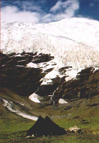 Koło południa dotarlimy do celu naszej wyprawy - obozu wypraw na Mt. Everest (Mt. Everest Base Camp) leżącego niedaleko Klasztoru Rongphu, najwyżej położonego klasztoru na wiecie (4980 m n.p.m.), gdzie w czasie swojej wietnoci żyło ponad 500 mnichów i mniszek. Tego dnia udało się nam na chwilę zobaczyć również Mt.Everest. Oto na kilka chwil koło południa rozchmurzyło się niebo i naszym oczom ukazał się szczyt Mt.Everestu ogromny, pokryty lodem i niegiem masyw górski na tle błękitnego nieba otoczony z obu stron kamienistymi łańcuchami górskimi i lodowcami. Po kilku jednak chwilach chmury ponownie zakryły szczyt. Widok ten, choć trwał krótko, zrekompensował nam wszystkie trudy i wysiłki.