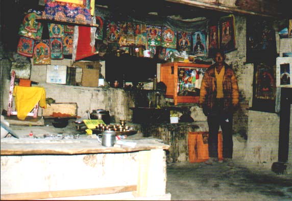 W podziemnej grocie znajdowały się malutkie kapliczki pogrążone w zupełnych ciemnociach, rozwietlone jedynie lampkami malanymi palącymi się przed ołtarzykami. We wnętrzu panowały przysłowiowe "egipskie ciemnoci", choć w tym wypadku można by je okrelić jako "tybetańskie ciemnoci". W grocie tej mieciło się również mieszkanie pustelnika - ciany pokryte płachtami folii i kilka najniezbędniejszych sprzętów, posłanie.