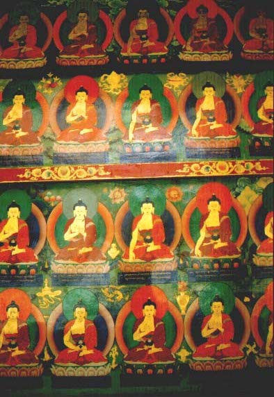 Największe wrażenie na odwiedzającym robią kilkupiętrowej wysokoci pozłacane posągi Buddy i ogromne, również pokryte złotem stupy (relikwiarze) oraz obszerne hale zgromadzeń wypełnione zapachem kadzideł i setkami migoczących przed ołtarzami lampek malanych.