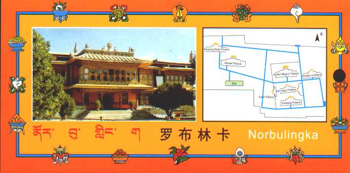 Z samego rana udalimy się jeszcze do Pałacu Klejnotów - Norbulingki, letniej rezydencji dalajlamy. Pałac ten znajduje się około trzy kilometry na zachód od centrum miasta. W nieco zaniedbanych ogrodach pałacowych odwiedzamy kolejne pałace i kaplice dalajlamów, jak również małe zoo. Najciekawszy jest pałac XIV Dalajlamy, oddany do użytku tuz przed opuszczeniem Tybetu przez Jego Świątobliwoć w 1959 roku. Można tam zobaczyć prywatne pokoje, prywatną kaplicę dalajlamy, sale audiencyjne, pozostałoci pierwszych samochodów w Tybecie podarowanych przez misję brytyjską czy palankiny dalajlamy. Na szczególną uwagę zasługują również piękne freski przedstawiające historię Tybetu na cianach prywatnej kaplicy dalajlamy.