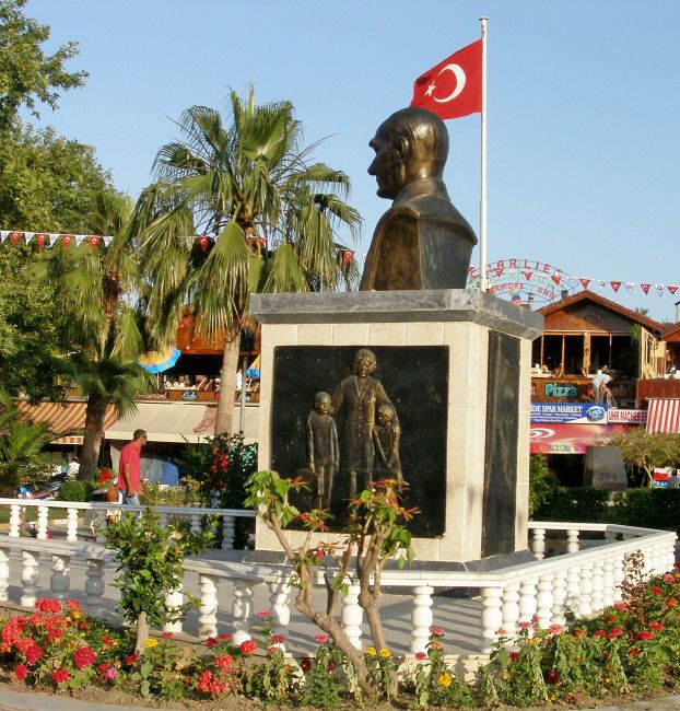 - Ojciec Narodu w Side, jak w każdym tureckim mieście, czuwa nad wszystkim. Z tej strony pomnika nad oświatą.