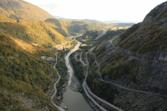 Widok kanionu, z zapory wodnej na rzece Inguri, dodam, że wej¶cie na zaporę jest możliwe za zgod± i w asy¶cie policji.