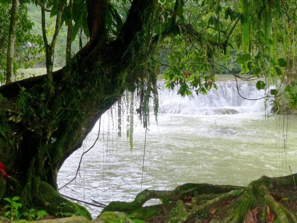 ciekawy zakątek przy wodospadzie.