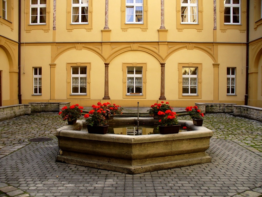 Dziedziniec z fontanną.