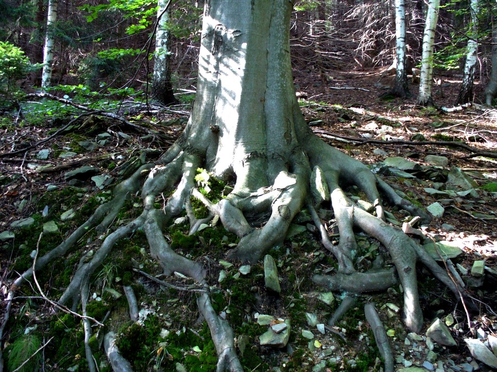 Korzenie w drodze na Biskupią Kopę.