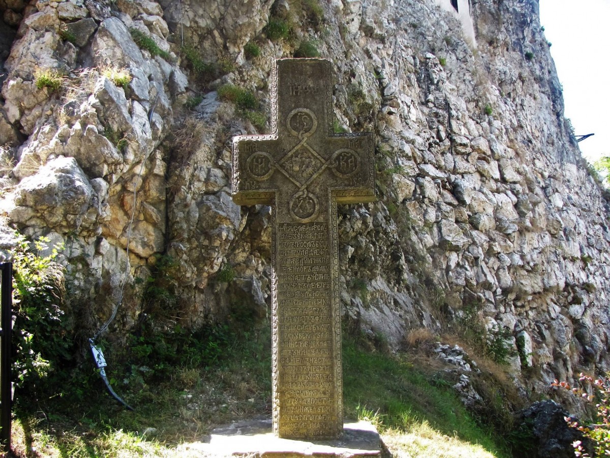 Foto-informacje:Krzyż przed zamkiem Draculi w Branie