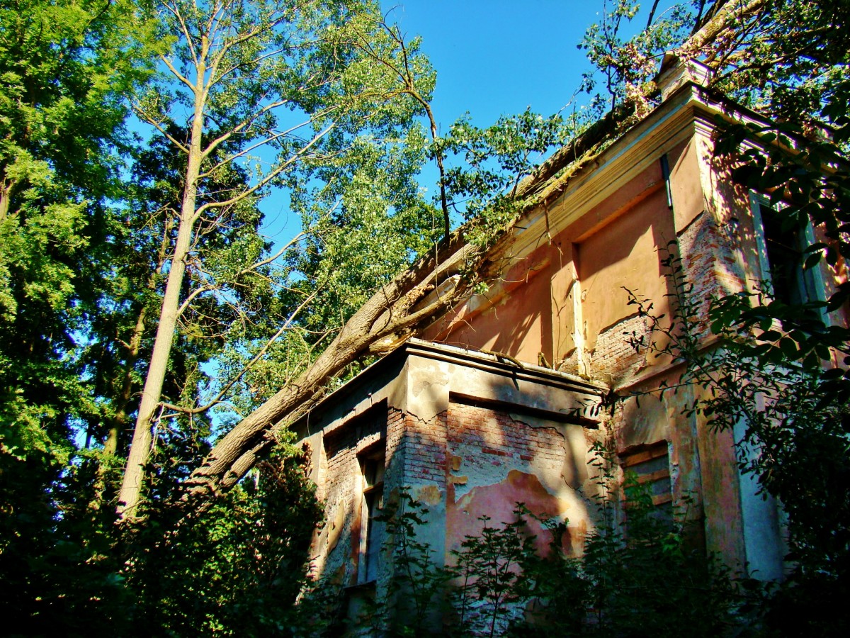 - Ruiny pałacu przywalone drzewem