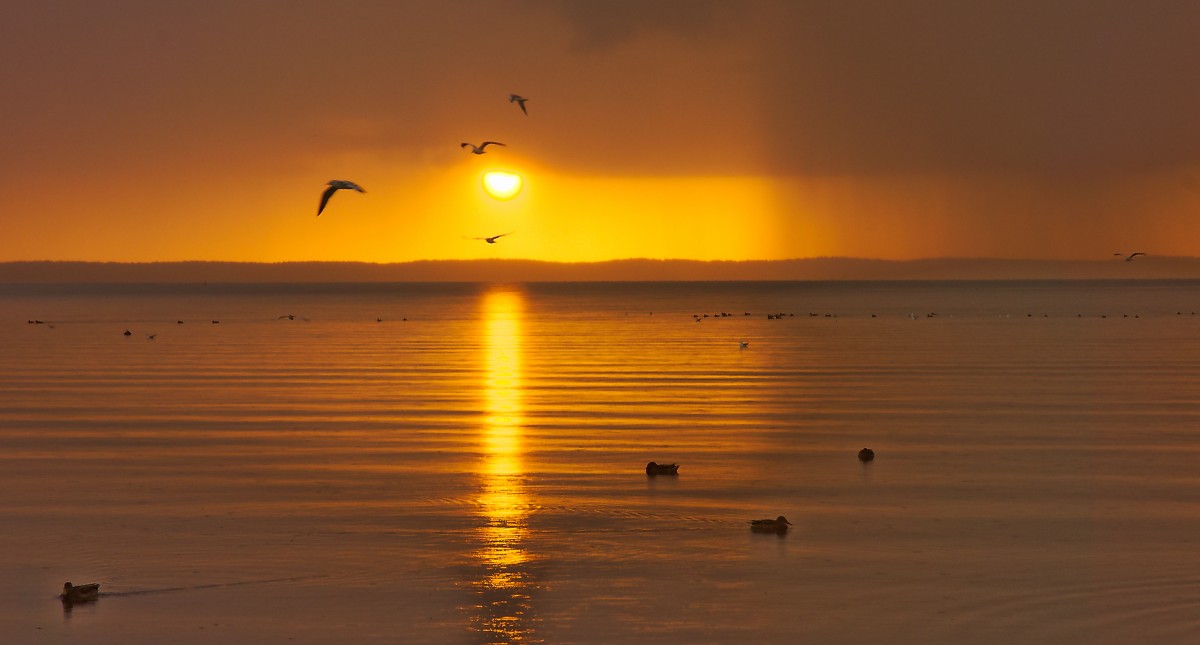 deszczowy zachod na Zalewie Wiślanym