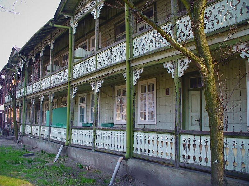 Zabytkowy budynek drewniany.