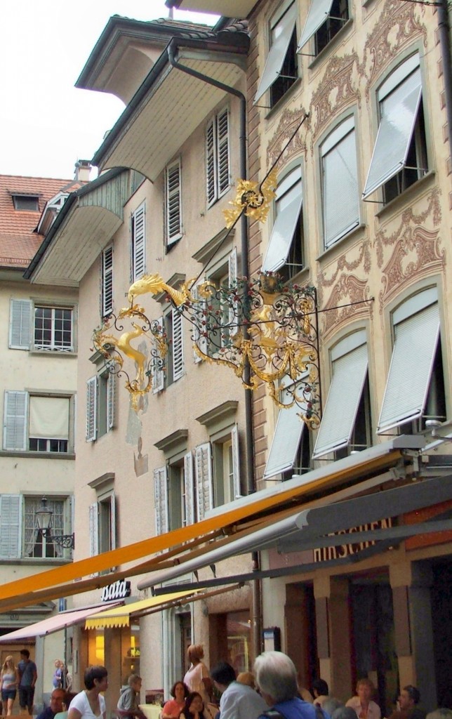 Stylowy szyld restauracji „Hirschen”