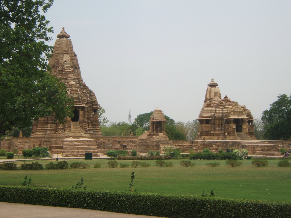 Foto-informacje:Od lewej świątynia Kandariji-Mahadeo, świątynia Mahadewy i świątynia Dewi Dżagadamby