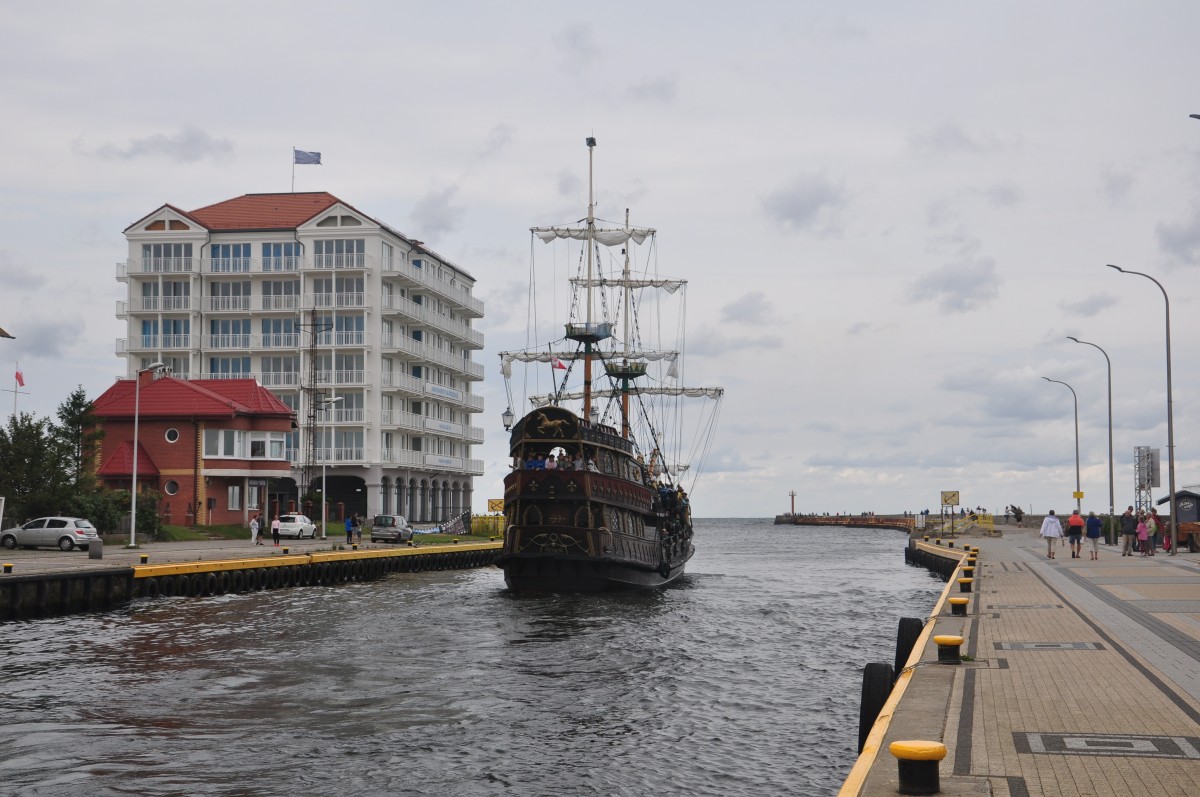 Darłowo, statek wypływa w morze