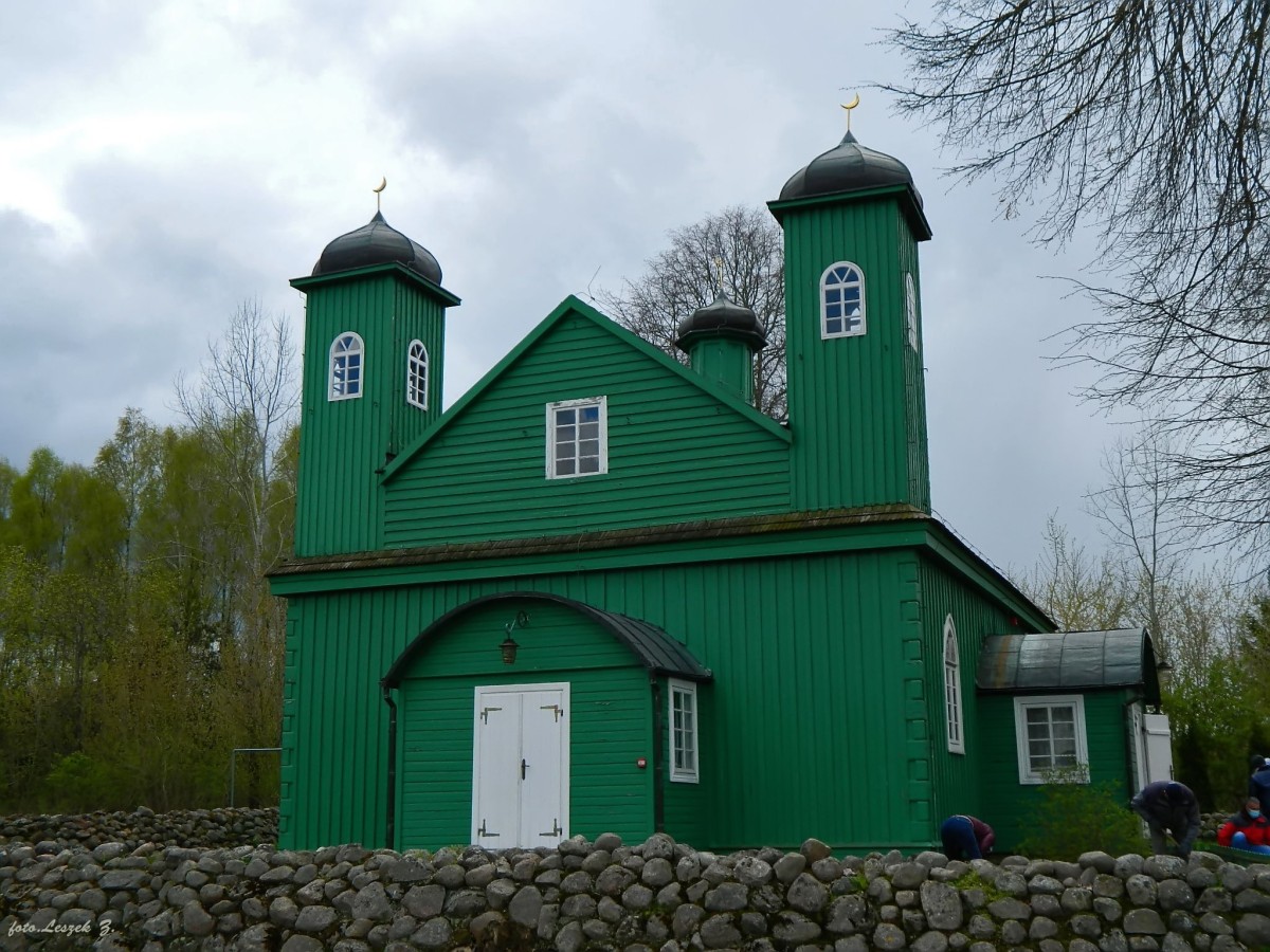 Foto-informacje:Najstarszy w Polsce meczet muzułmański z XVIII w. drewniany na planie prostokąta z dwoma wieżyczkami wykończone półksiężycami.