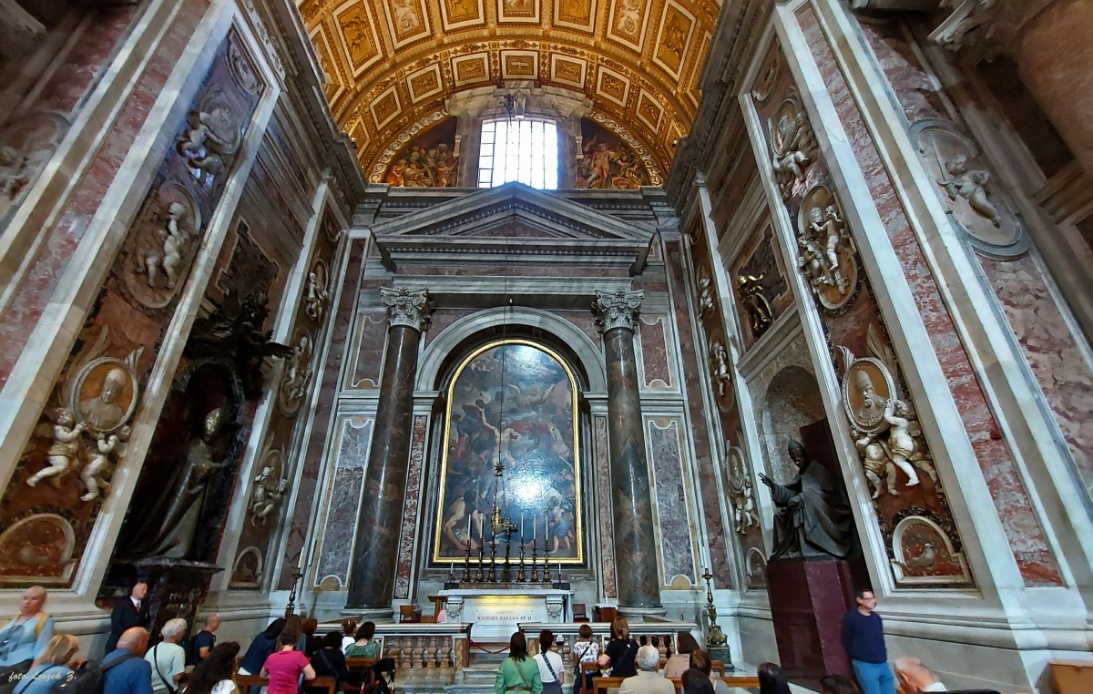 Grób Jana Pawła II znajduje się w Kaplicy św. Sebastiana, początkowo został pochowany w Grotach Watykańskich, dopiero po beatyfikacji 1 maja 2011 roku jego doczesne szczątki przeniesiono na górę, do Kaplicy św. Sebastiana. Jest to druga kaplica po prawej stronie jak wchodzi się do bazyliki, pierwsza to Pieta Michała Anioła. Po kanonizacji 27.04. 2014 r. zmieniono tabliczkę na grobie Jana Pawła II z beatus – błogosławiony na sanctus – święty. Nad grobem mozaika Męczeństwo św. Sebastiana’ – święty ginie przeszyty strzałami. Dwa pomniki, które widać na zdjęciu to pomniki papieży Piusa XI i Piusa XII.