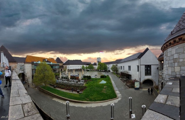 Dziedziniec zamku z tarasu widokowego.