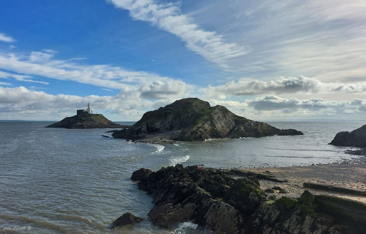 Latarnia morska Mumbles w czasie przypływu.